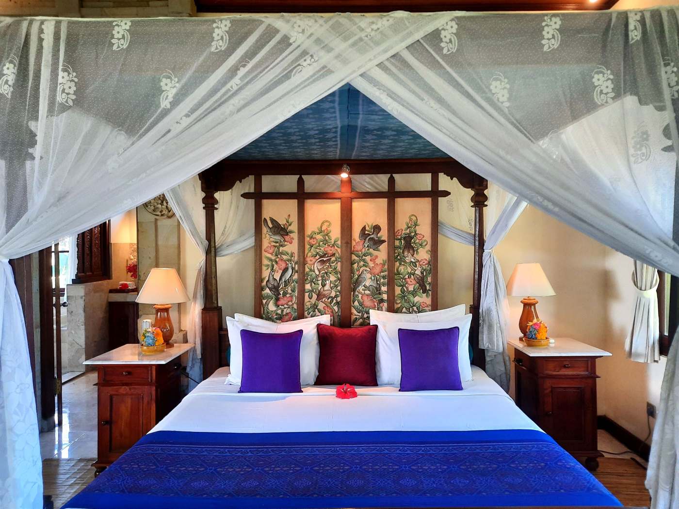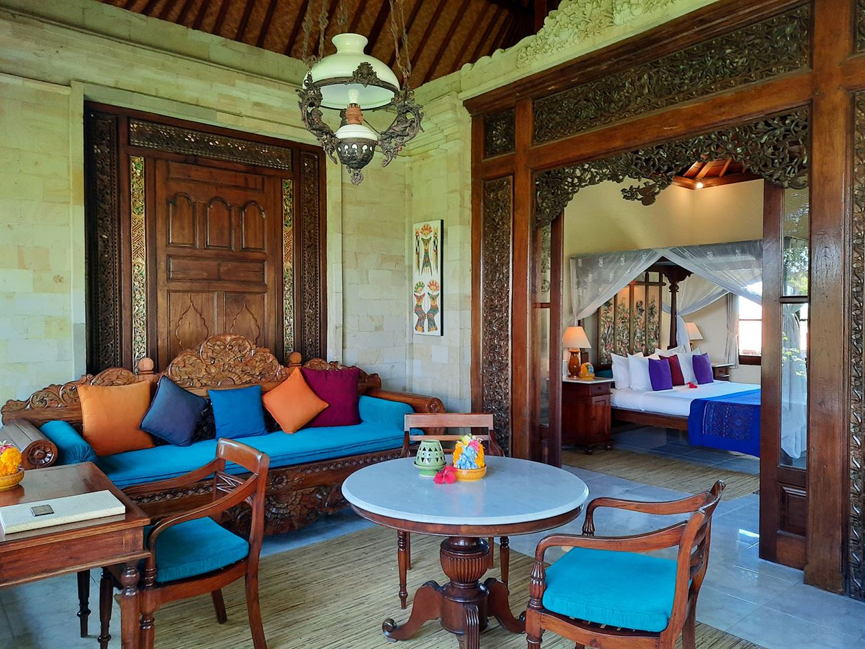 Two One-Bedroom Suites at Alam Jiwa called Merpati and Casuary are set in one building- each room with private entrance. Rooms are beautifully appointed in its own style embracing traditional Balinese architecture. Stone carvings gracing the walls were crafted by Bapak and local artisan friends. Bedrooms have air-conditioning as well as ceiling fans. Luxurious bathrooms have an indoor bathtub and an open-air shower. Spacious verandas invite outdoor living with a relaxing view. On clear days, you may be able to see Mt. Agung in the distance. Our staff are always available to make your stay comfortable and memorable.