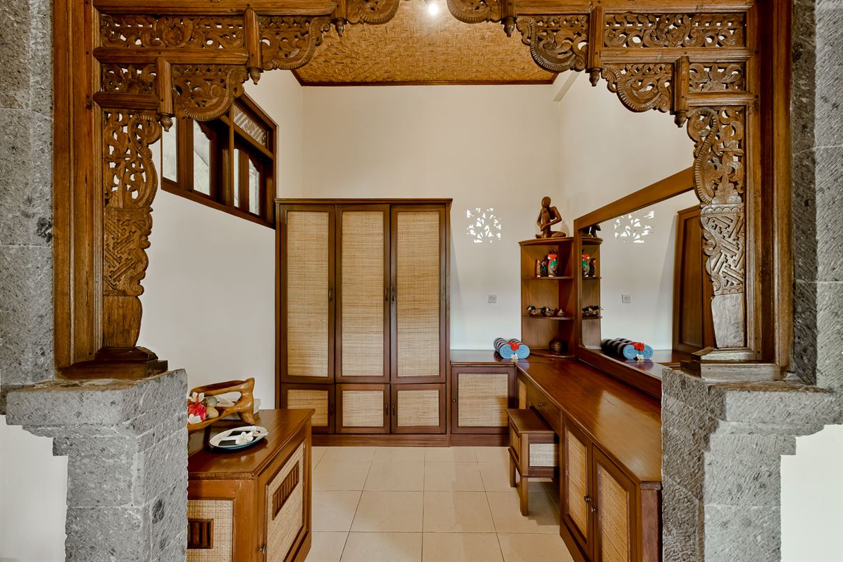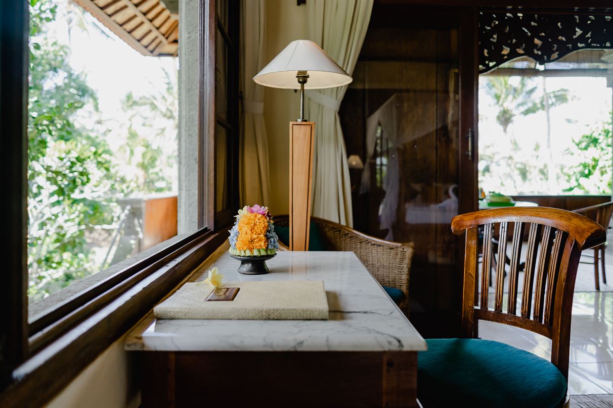 Amidst lush gardens, feel at home in this luxurious space. Facilities include a writing desk, dressing room, mini-fridge and coffee/tea maker. A spacious garden bathroom includes a bathtub and shower. Ideal for couples, singles, friends or families enjoying a luxurious Balinese experience. Enjoy relax time at the private pool shared with the upper level Gangga Suite.