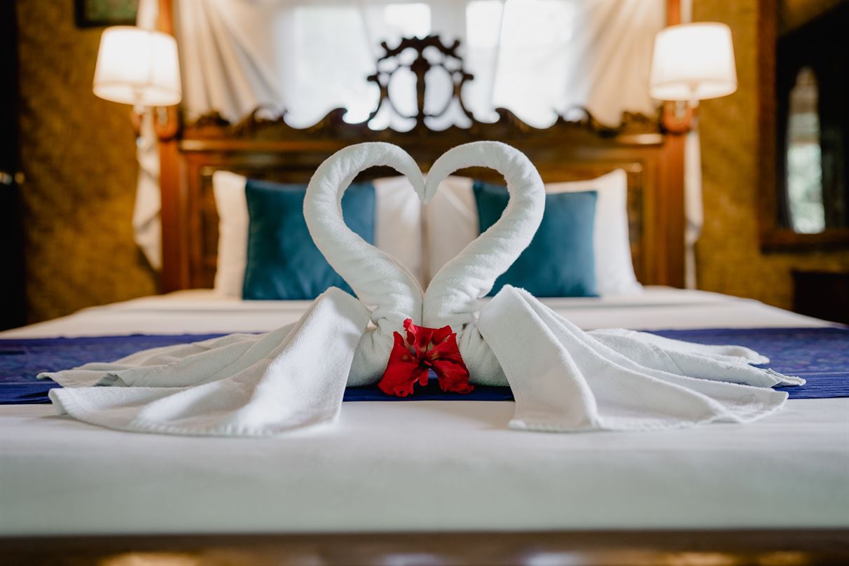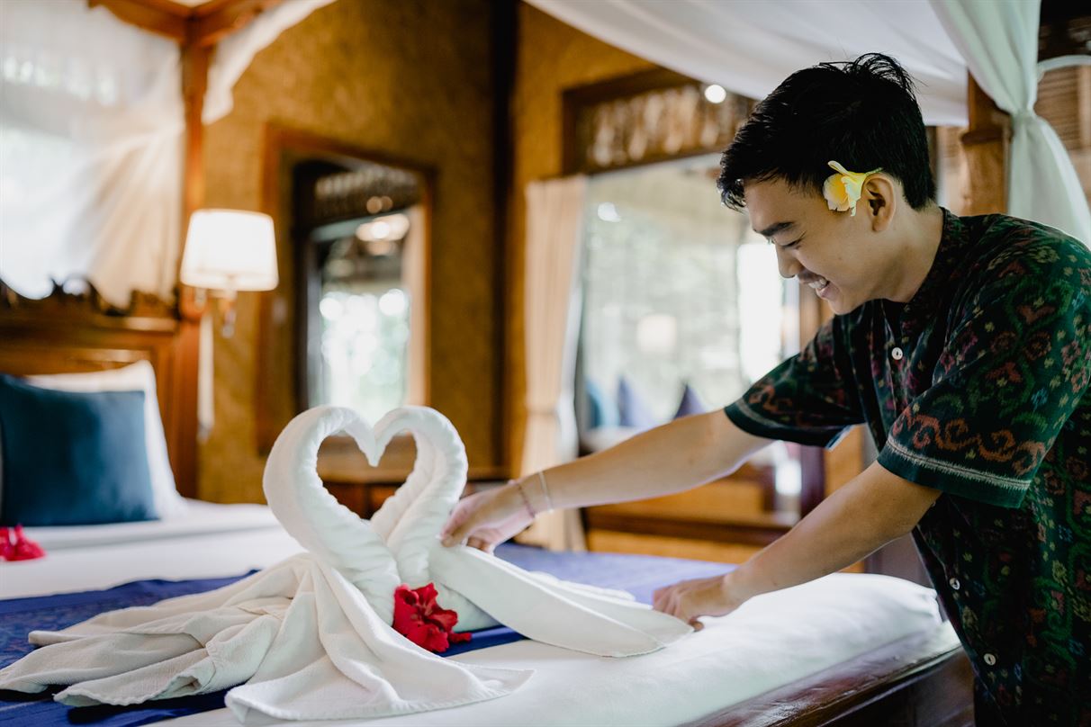 A two-level traditional Balinese bungalow enjoying garden and Monkey Forest views.