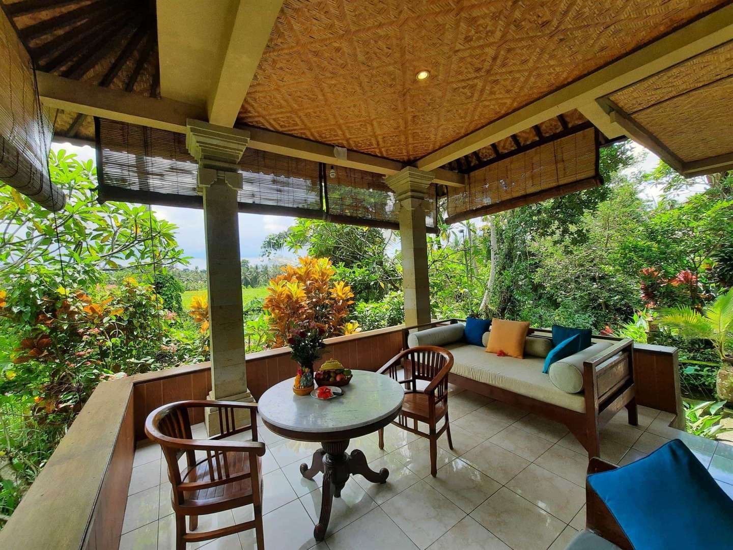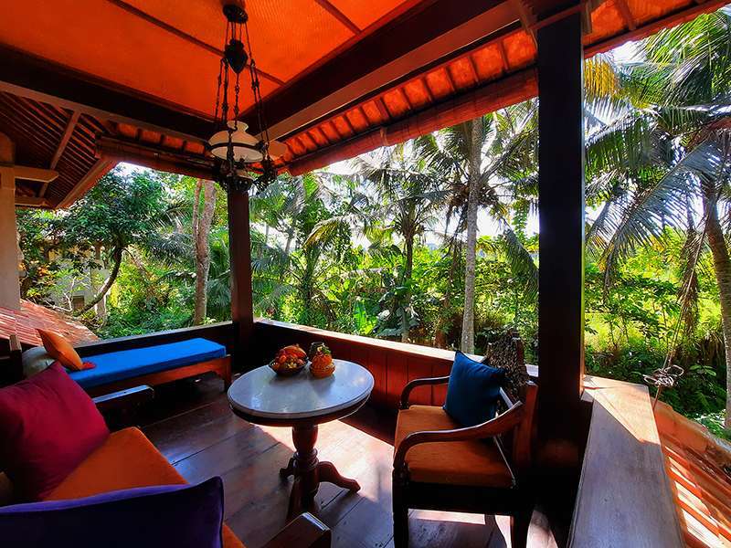 Upper level room with a veranda space offering a lovely relaxing view. On clear days you may be able to see Mt. Agung.